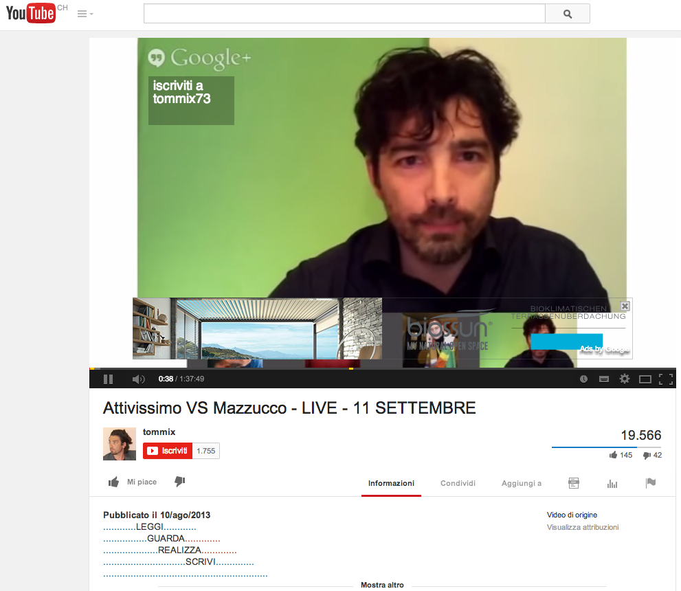 Aggiornamento 3 (2014/08/18): Il video originale è di nuovo visibile, ma solo se si conosce il suo link (youtu.be/b-I_RFxh7Vw): infatti è riservato (non è in elenco di Youtube). Inoltre le statistiche di visualizzazione sono disabilitate per motivi che non conosco. Screenshot:
