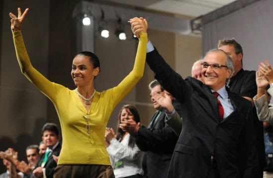 A queda do avião empurrou para a cabeça da chapa do PS a candidata que concorria como vice-presidente, Marina Silva. Em 2010, Silva recebeu inesperados 20% dos votos à presidência, como candidata de seu Partido Verde. Esse ano, em vez de concorrer sob a legenda de seu partido, Marina optou por agregar-se à chapa pró-business, mas ainda dita “socialista” de Campos. Hoje, Marina já está sendo apresentada – talvez com certo exagero muito precipitado! – como melhor aposta para derrotar Rousseff nas eleições presidenciais de outubro próximo.