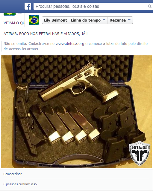Gente como essa tal Lily Belmonte e o policial federal que se vangloria, na mesma rede social, de treinar pontaria num alvo com a caricatura da presidenta, são nocivas para a democracia porque se utilizam dela para contaminar o ambiente social com o seu ódio patológico.