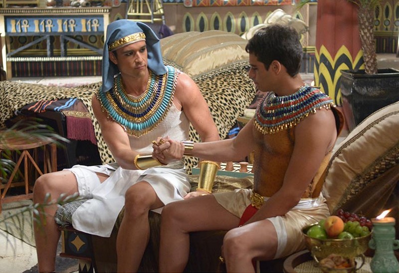Assisti, por alguns minutos, a um trecho da telenovela "Os Dez Mandamentos", exibida na Rede Record.