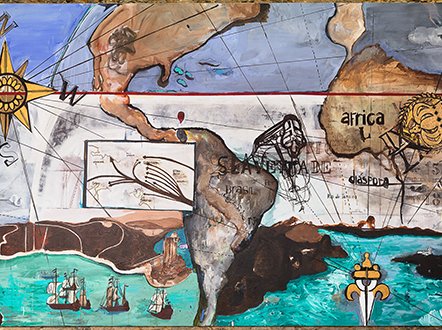 As questões relativas à colonização também constam dos trabalhos do brasileiro Arjan Martins, que exibe uma série de pinturas com referências às navegações. Já o senegalês Omar Victor Diop usa a linguagem da fotografia de moda para recriar, tendo ele mesmo como modelo, retratos de figuras notáveis da África que conseguiram posições de destaque na Europa nos séculos 18 e 19. “O poder de persuasão e sedução dessas imagens vem do mundo fashion”, enfatiza o curador.