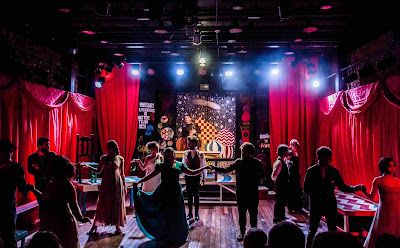 Para promover uma atmosfera extrovertida, o elenco extravasa o ambiente do palco principal e corre para o público em passarelas que permeiam toda a plateia, composta por cadeiras, mesas e banquetas, em atuações interativas que promovem a imersão dos espectadores. A orquestra também faz parte dessa grande festa e fica disposta em um pit no centro da plateia. Alguns dos artistas também circulam pelas passarelas tocando instrumentos.