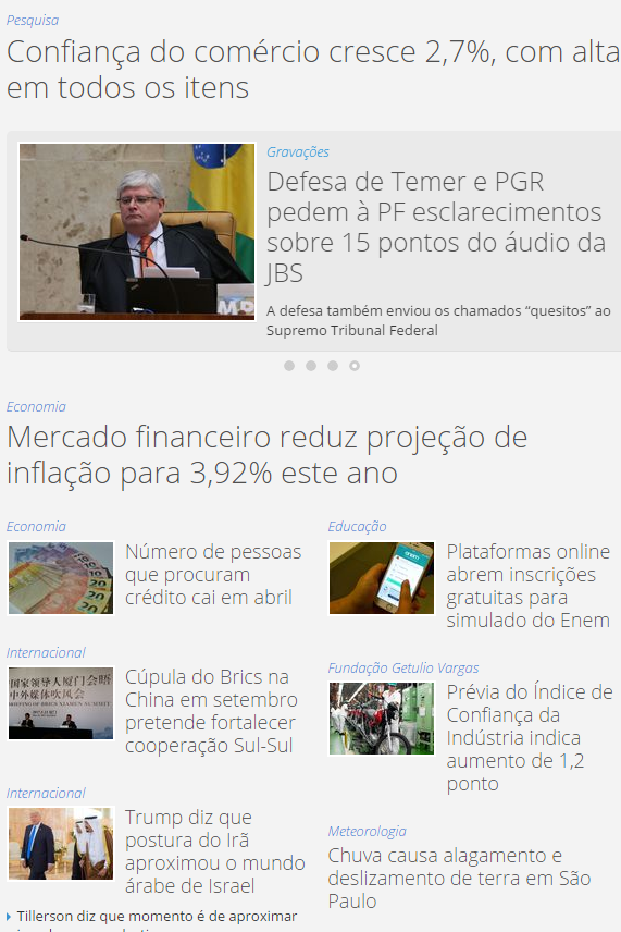 O noticiário da Agência Brasil, uma verdadeira fábrica de press releases otimistas sobre o governo federal, destaca que "a queda das despesas e o reforço de caixa do Imposto de Renda Pessoa Física fez (sic) as contas do Governo Central registrarem o melhor resultado para meses de abril em três anos". O título é quase épico: "Governo Central tem melhor resultado nas contas para abril em três anos."