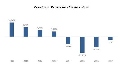 O indicador mostra que, com exceção da Páscoa que apresentou alta de 0,93%, o resultado do Dia dos Pais foi o melhor para uma data comemorativa em 2017, uma vez que tanto no Dia das Mães como no Dia dos Namorados as quedas foram ainda maiores, de -5,50% e -9,61%, respectivamente.