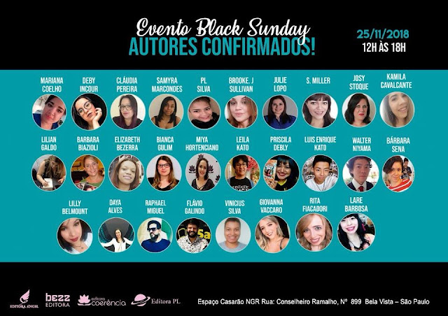 Novembre 12, 2018 10:19A Editora Coerência vai promover o Black Sunday, um evento que também conta com a organização das Editoras Angel, Bezz e PL. O coquetel de autógrafos, com venda de livros em promoção, terá a presença de autores dessas editoras, e será realizado das 12 às 18 horas do dia 25 de novembro (domingo) no Espaço Casarão, localizado na Rua Conselheiro Ramalho, 899, Bela Vista. O evento é aberto ao público, com entrada gratuita, porém há um limite de vagas de 300 pessoas.