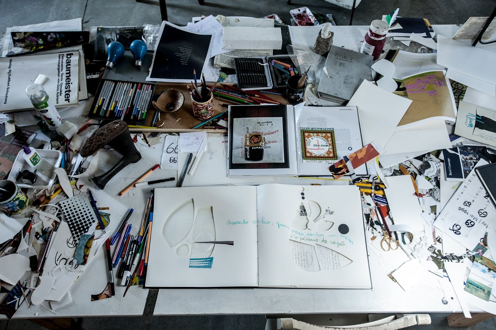 Nos vazados e nas aberturas das imagens, o artista revela uma multiplicação de planos: camadas sucessivas em que continente e conteúdo se alternam e se contrapõem. "É uma poesia em que a imagem, aparentemente plana, aos poucos se abre em recortes e vazados por onde o leitor (também um espectador) é atraído para camadas profundas das palavras, dos ritmos e da poderosa visualidade que sedimenta sua obra", revela a organizadora. Os desenhos a nanquim do ateliê, que aparecem na abertura e no encerramento, também são de autoria de Dala Stella e foram feitos especialmente para esse livro.