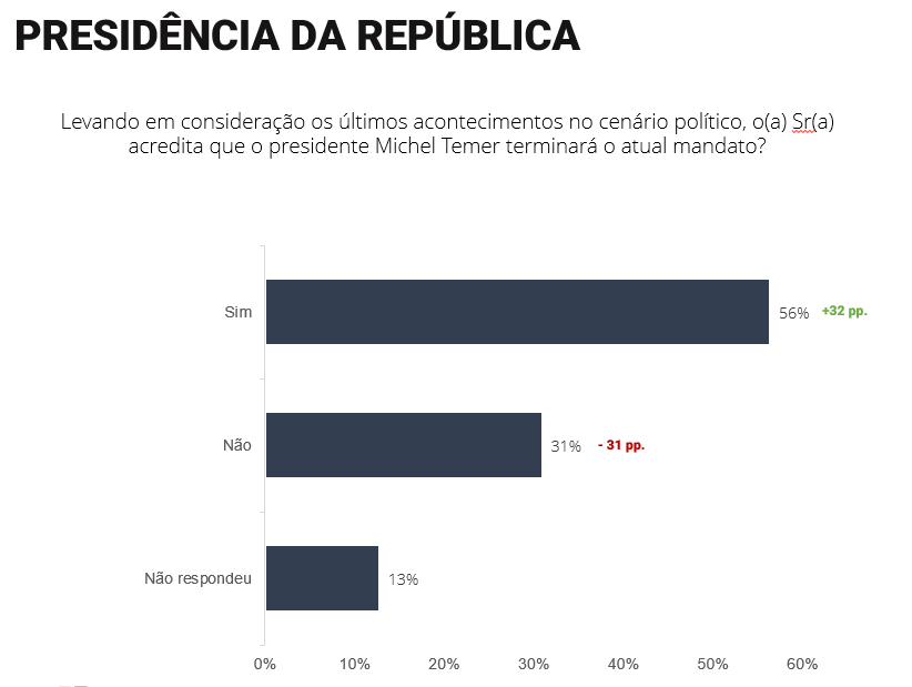 Na rodada de maio, os parlamentares ainda estavam sob o impacto da gravação da conversa entre o empresário Joesley Batista e o presidente Michel Temer, na qual o chefe do Executivo demonstra aprovar o relato do seu interlocutor sobre o suborno de autoridades e do ex-presidente da Câmara Eduardo Cunha (PMDB-RJ), atualmente preso em Curitiba.