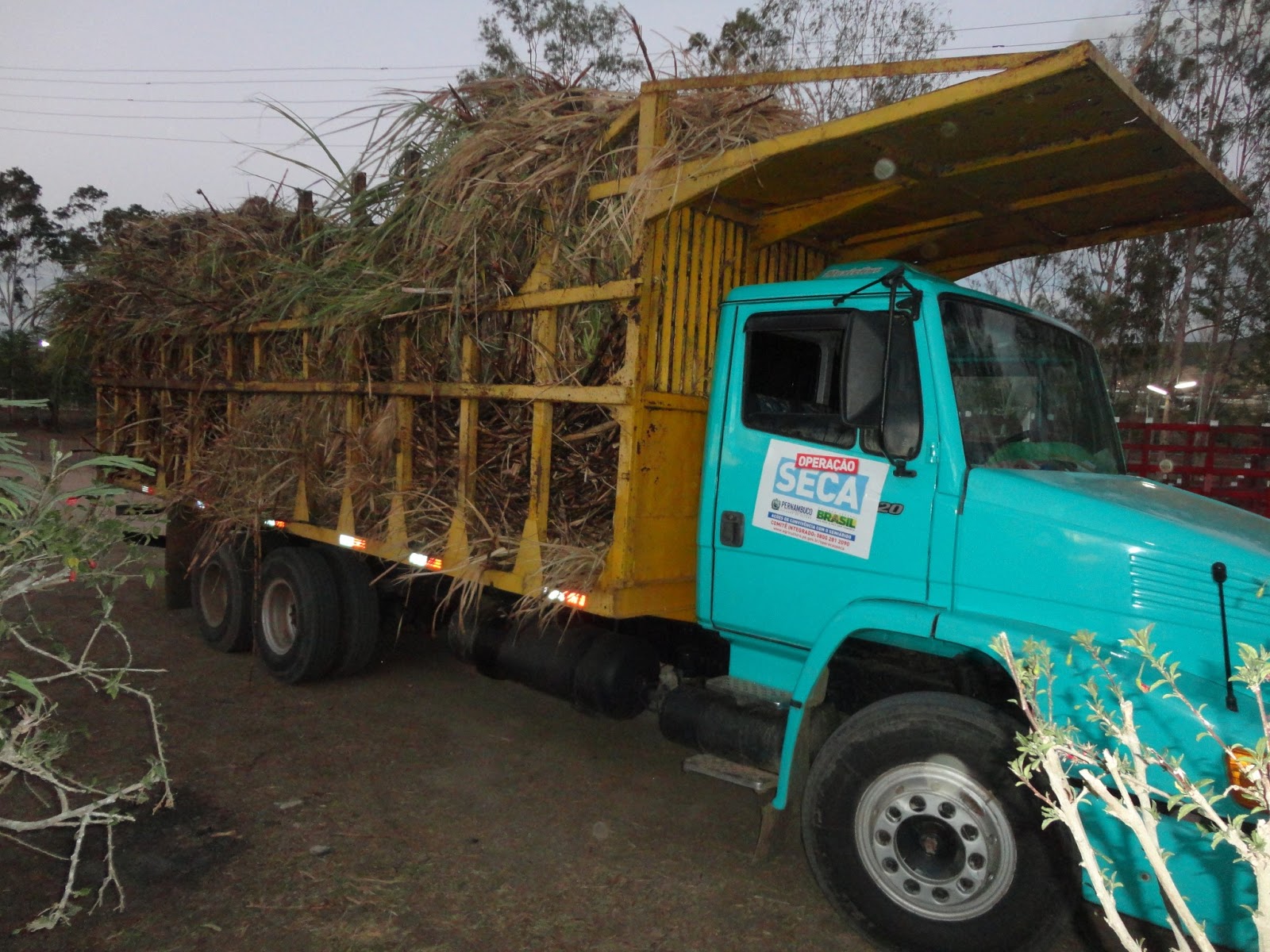 | Uma máquina de plantão foi quem descarregou o caminhão vindo de uma usina que fica no município de Joaquim Nabuco, próximo a Palmares, com mais de 10 mil kg de cana de açúcar. O polo de distribuição que fica em Bom Conselho, divide as 432 toneladas prometidas, com os municípios de Bom Conselho, Terezinha, Saloá, Iati e Lagoa do Ouro. |