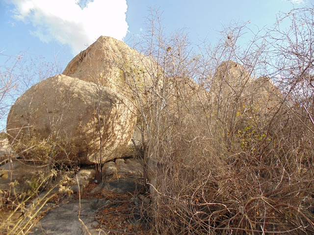 Rochas escoradas em outras rochas menores, macambiras em cima das rochas, vegetação de caatinga por todos os lados e em baixo uma simples comunidade rural. Interessante, que nesse lugar, você fica tão a vontade e ao mesmo tempo num sabe onde está pisando, se em solo paraibano ou pernambucano.