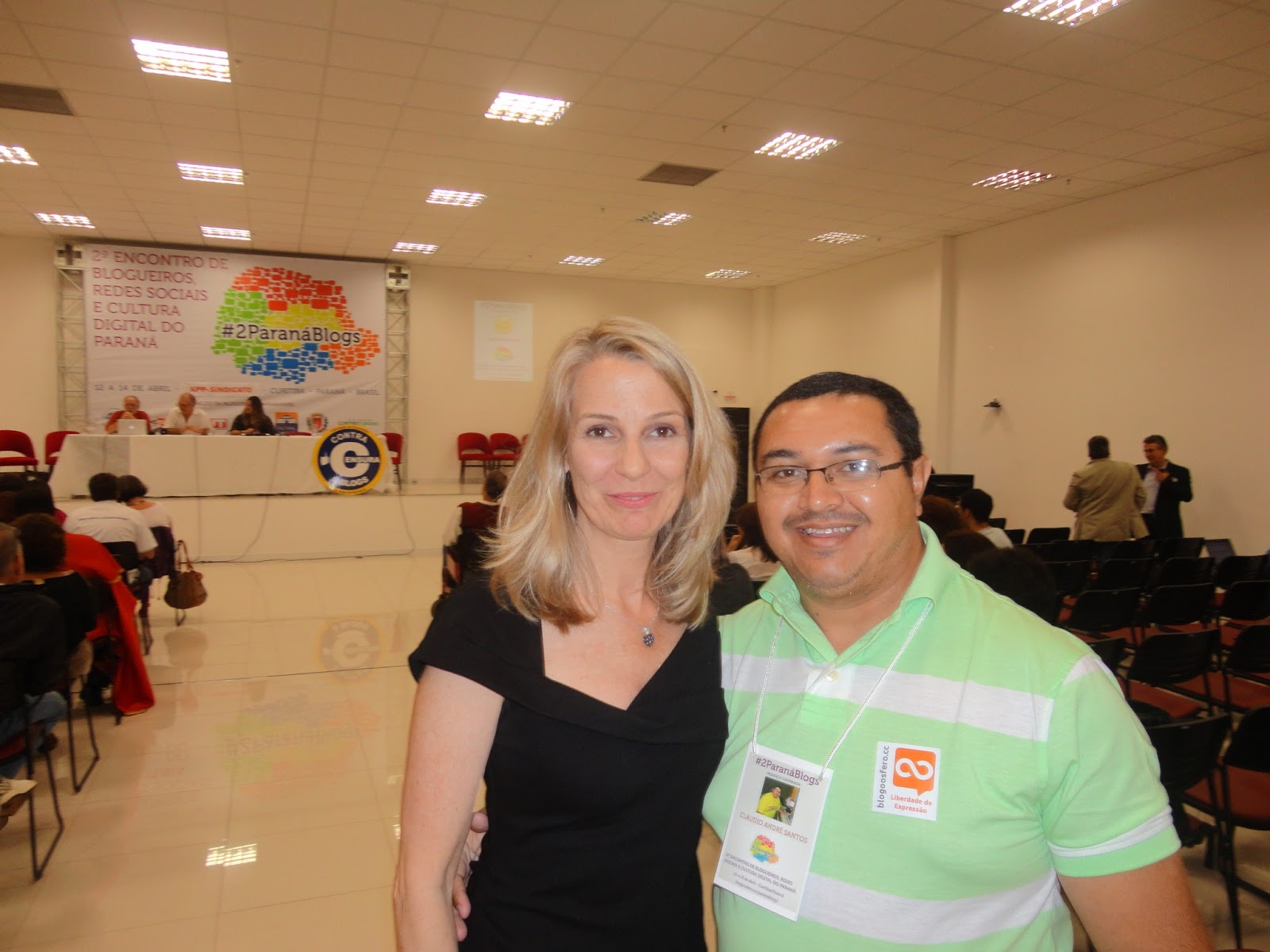 | No encerramento do primeiro dia do 2º Paraná Blogs, foi uma festa só. O blogueiro MIRO, presidente do Barão de Itararé de São Paulo, fez a festa em um restaurante no centro da capital paranaense. Amante de um bom aperitivo, Miro, ficou com vários blogueiros até altas horas papeando e tomando aquela geladinha. Podemos ver acima, a blogueira Maria Frô (blusa vermelha) e Miro (camisa branca), ao lado do blogueiro Cláudio André O Poeta. |