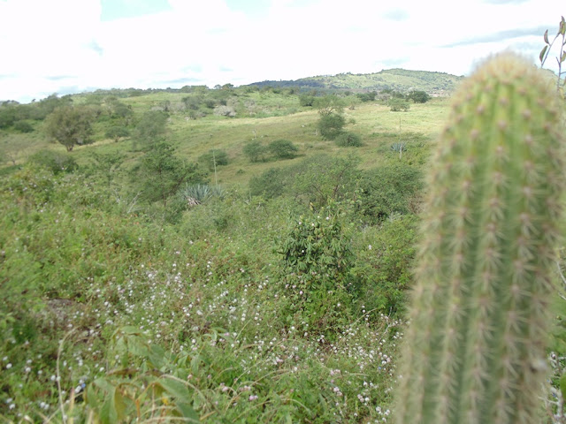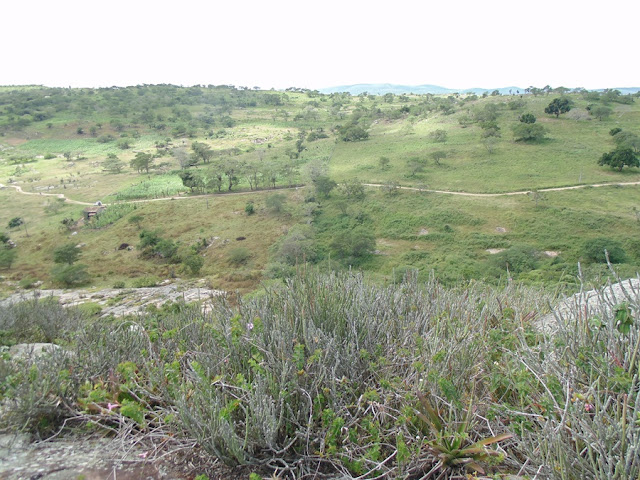 Nessa região, as chuvas que caem são suficientes para deixar a vegetação verdinha, mas, não suficiente para encher os barreiros que estão no entorno da serra do Jacu.
