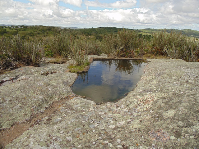 Em cima da serra do Jacu tem vários caldeirões escavados na grande rocha. Com as últimas chuvas que caíram na região, existe muita água acumulada.