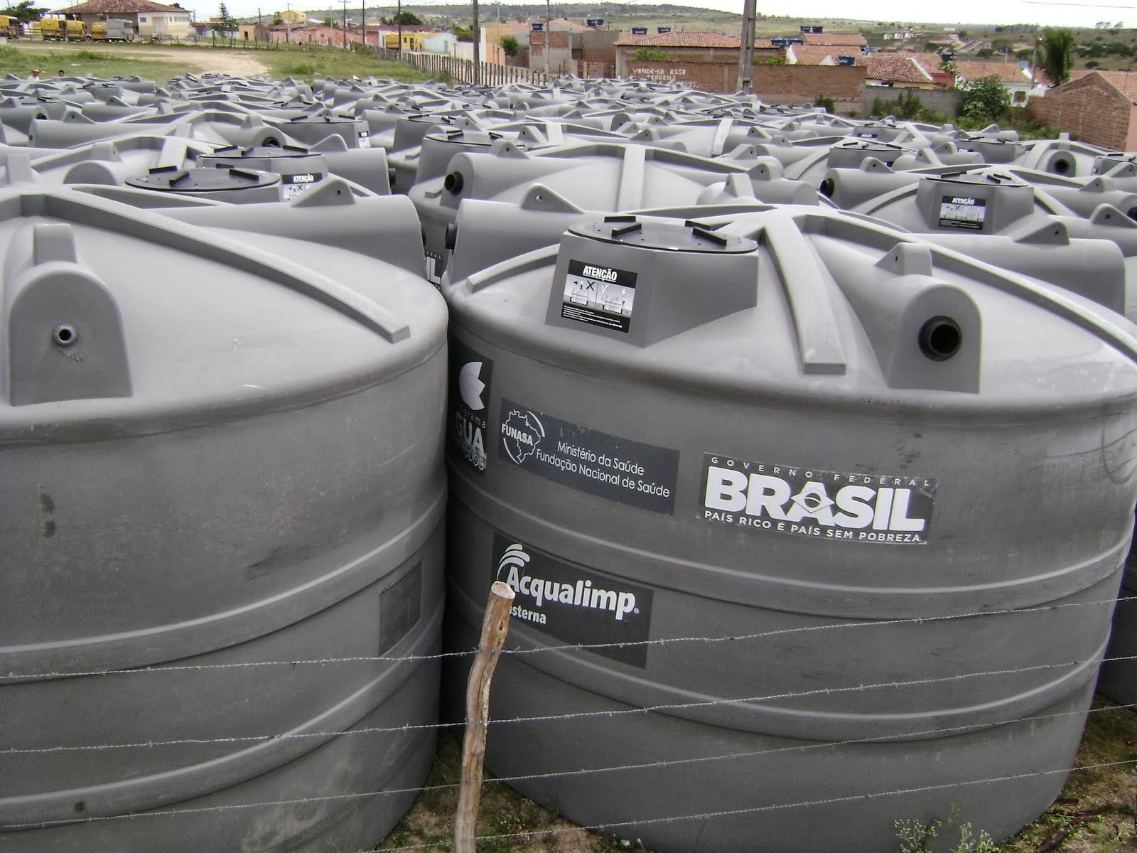 As 350 cisternas estão sendo armazenadas na área da Feira Parque Manoel Reino da Silva, de onde serão levadas para as Associações Comunitárias nos próximos dias.