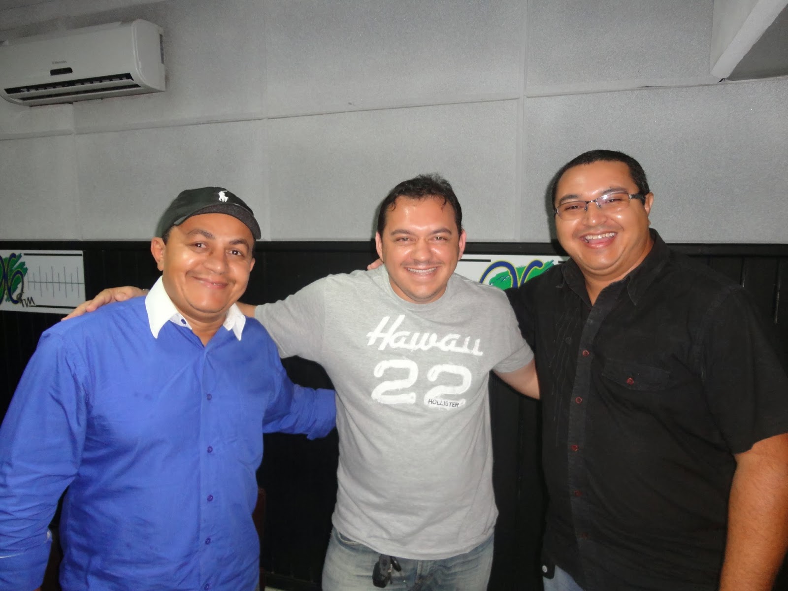 | O encontro dos radialistas Clevânio Henrique, Ângelo Farias e Cláudio André no estúdio da Rádio 96 FM Arapiraca-AL |