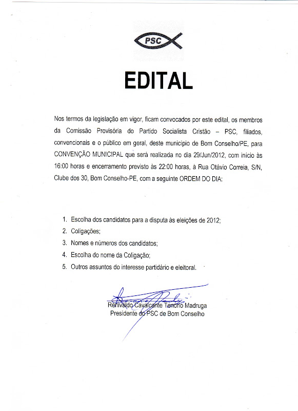 EDITAIS DE CONVOCAÇÃO DO PCdoB, PSB, PSD E PSC