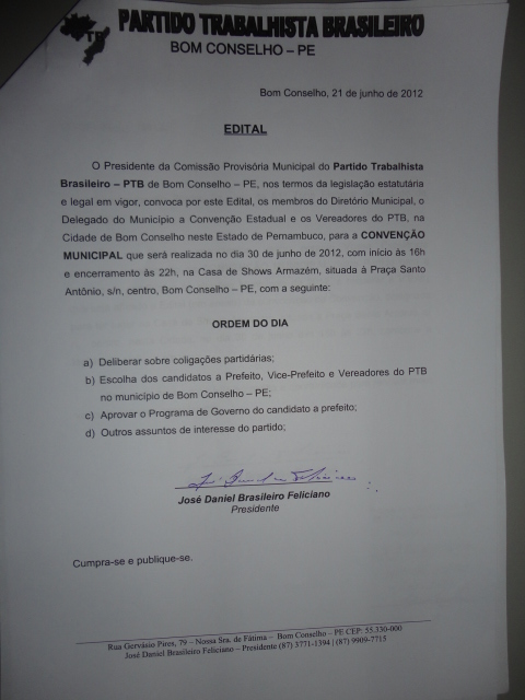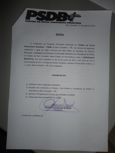 EDITAIS DE CONVOCAÇÃO DOS PARTIDOS PSL, PTB, PSDB, PTdoB, PRB, DEM, PRP, PRTB, PHS,PTN