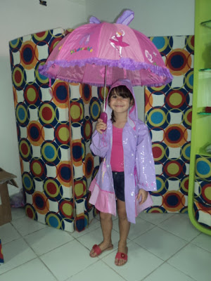 | Gabriel com seu novo guarda - chuva. |