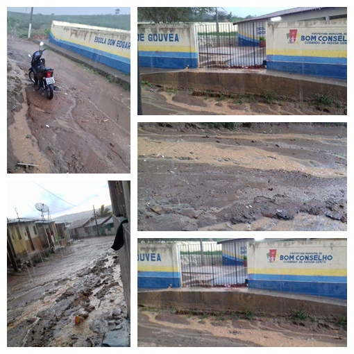 Olhe a situação da nossa rua, no período de chuva. A escola não tem levada e a água que desce destrói as casas. Peça ajuda para que a gestão do município olhe para nossa situação. Moro na Travessa Alda Teixeira, perto da Escola Municipal Dom Edigar Gouveia, na Pipoqueira.