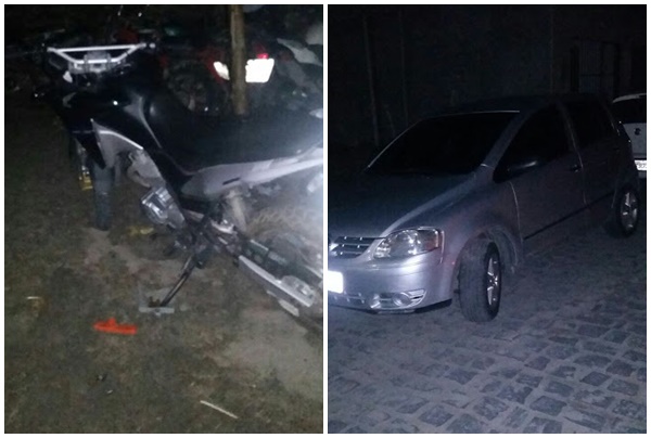 | A moto usada no dia do assalto e o Fox que fez a cobertura foram apreendidos. |