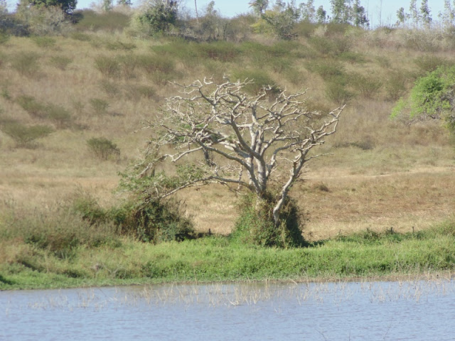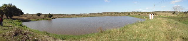 Veja que nesse local que faz parte do percusso do rio, percebe-se que a nascente se prolonga por alguns metros dentro da propriedade, mudando totalmente a vegetação, ou seja, nas laterais vegetação rasteira sofre com a estiagem prolongada e no curso do rio a água infiltrada no solo da um tom de vivacidade, graças ao verde que perdura.
