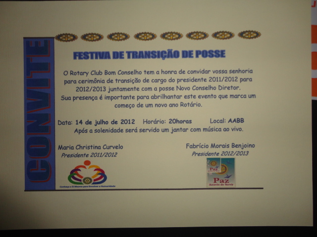 QUEREMOS AGRADECER O CONVITE ENVIADO PELO ROTARY CLUB A ESTE BLOGUEIRO, E SE DEUS QUISER ESTAREMOS PRESTIGIANDO ESTA NOBRE FESTA.