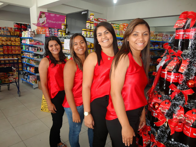 | Funcionárias competentes do Supermercado Luz da Economia já em clima de natal. Na verdade, a equipe do Supermercado Luz da Economia é uma família pronta para servir a sua família o tempo todo. |