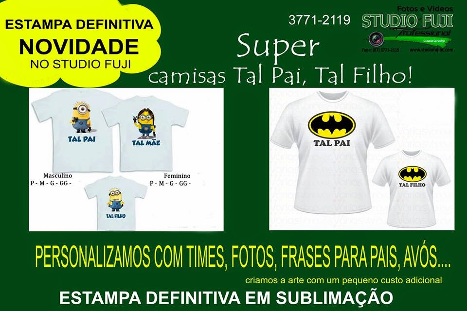 | O Studio Fuji está com várias novidades para você presentear seu pai. Está na hora de visitar o Stúdio Fuji e preparar uma grande surpresa para ele. No link abaixo você terá mais informações. www.studiofujibc.com |
