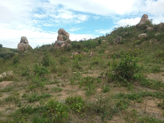 As Pedras com cara de gente e animais. Vejam que a primeira do lado esquerdo parece com o formato do rosto de uma pessoa e as outras duas com cara de cachorro. Cada pessoa deve ter a sensibilidade no olhar. Batizamos o local como AS PEDRAS DAS TRÊS CARAS.