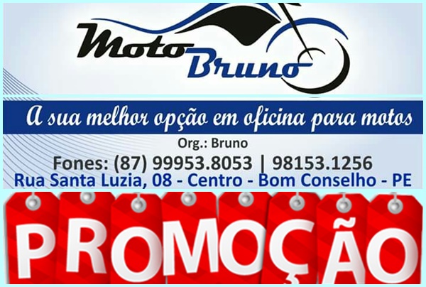 Durante todo o mês de fevereiro a Loja Bruno Moto Peças, localizada na Rua Santa Luzia, no centro de Bom Conselho, vai estar com uma grande PROMOÇÃO: Na troca de óleo da sua motocicleta, o óleo MOBIL de R$ 17,00, vai custar apenas R$ 15,00 no pagamento à vista. Bruno Moto Peças vai fazer uma ...