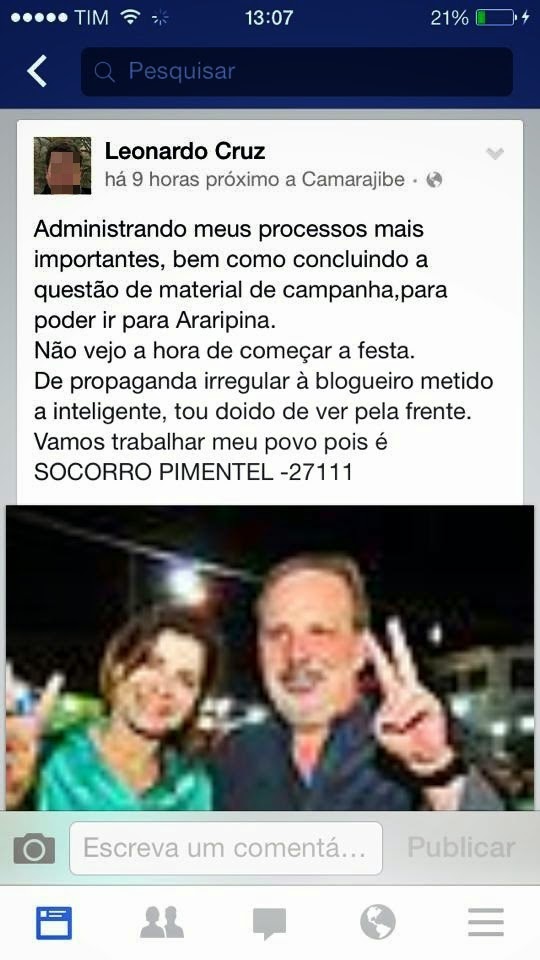 30 de Julho de 2014, 18:12Provocações e intimidações nas redes sociais aquecem a campanha em Araripina