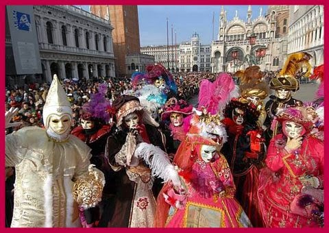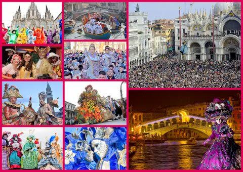 Veneza esta repleta de Turistas e Venezianos Fantasiados,  Festejando pelas Ruas, num dos mais Famosos Carnavais do Mundo. As Comemorações começam com o “Festival Veneziano Sull’ Acqua”, uma Festa de Luzes, Danças, Musicas, e Jogos Pirotécnicos com Barcos Alegóricos nas Aguas do Principal Canal da Cidade, seguido dos Prazeres Gastronômicos e uma Saudável Dose de Vinho ou Prosecco. O Carnaval de Veneza, surgiu a partir da Tradição do Século XVIII, onde a Nobreza se disfarçava para sair as Ruas e se misturar com o Povão. Desde então as Máscaras são elementos mais importantes do Carnaval Veneziano.