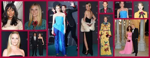 GUCCI: A Marca Italiana foi a Patrocinadora do evento pelo segundo ano consecutivo e vestiu a maioria das Estrelas convidadas, como Salma, Diane, Rosie, Reese, Naomi, Kim e Gwyneth