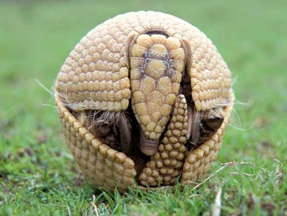 Mas, durante muito tempo, a caça foi o principal vilão. Quando se sente ameaçado, o animal tem a habilidade de se enrolar e assumir a forma de uma bola, protegendo as partes moles do corpo no interior da carapaça rígida, o que justifica o nome de tatu-bola (veja no vídeo abaixo). Essa peculiaridade é um escudo poderoso contra predadores da natureza, mas que torna o animal uma presa fácil para os humanos. “Ele pode ficar hermeticamente fechado nessa posição por até duas horas. É muito fácil para um caçador pegá-lo com as mãos”, explica o pesquisador, destacando que hoje a caça ao animal está restrita a regiões onde ele ainda ocorre, como Tocantins e Goiás.