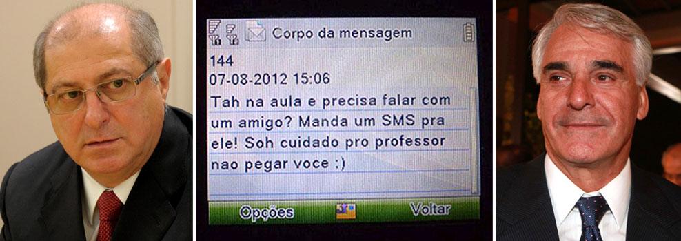 Operadora sugere a estudantes que enviem SMS a amigos de dentro da escola e sugere “cuidado pro professor não pegar você ;)”; dias atrás, o presidente do Conselho de Administração da empresa, Manoel Horácio, foi à televisão falar dos investimentos no Brasil; Paulo Bernardo vê “caso de polícia”