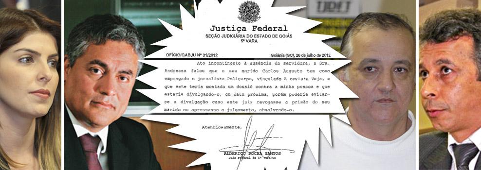 Documento obtido com exclusividade por 247 contém o ofício à Justiça Federal de Goiás, datado de 26 de julho, assinado pelo juiz Rocha Santos, no qual ele relata como foi e quais foram os termos da ameaça recebida de Andressa. A iniciativa é tratada como "tentativa de intimidação". Ele lembrou, oficialmente, que só recebeu Andressa em seu gabinete, na 5ª Vara Federal, em Goiânia, após muita insitência da parte dela.