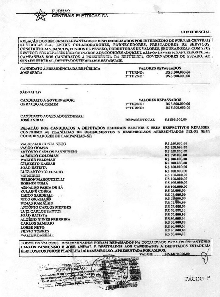 Lista Furnas Mensalão, pra Judiciário e Mídia falar