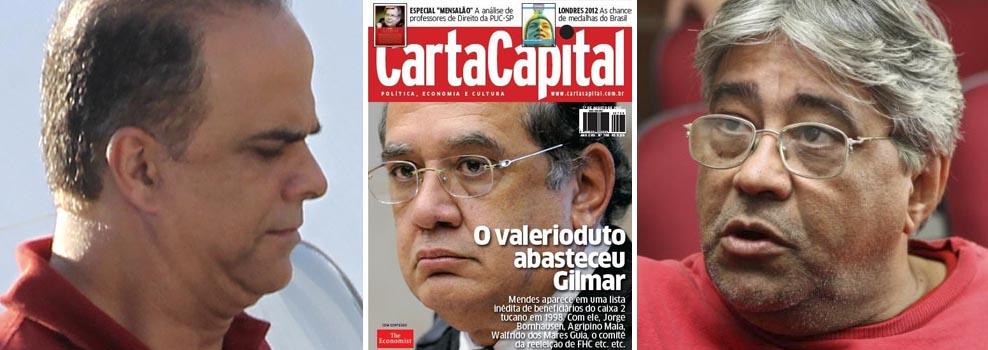 O publicitário Marcos Valério, por meio de seu advogado, optou por manifestar, em nota à imprensa, "perplexidade com o teor de matéria publicada nesta data pela revista Carta Capital". Ele sustentou que a apuração da reportagem da revista semanal foi "baseada em documentos e informações falsas". Sob a capa "O valerioduto abasteceu Gilmar", a publicação divulgou, entre outros documentos, uma "Declaração para fins de prova judicial ou extrajudicial", que teria sido assinada no 1º Ofício de Belo Horizonte, pelo próprio Marcos Valério, na qual está a admissão de repasse de "R$ 4.500.000,00 para Dr. Eduardo Brandão de Azeredo". A soma, diz a peça, teve como origem recursos oriundos do "BEMGE, CREDIREAL, BANCO RURAL, COMIG, COPASA, LOTERIA MINEIRA, e por intermédio das construtoras ANDRADE GUTIERREZ e ARG".