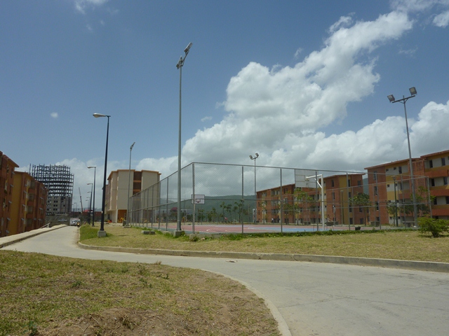 | Quadra poliesportiva em Ciudad Caribia. Há também uma creche e uma escola na cidade socialista |