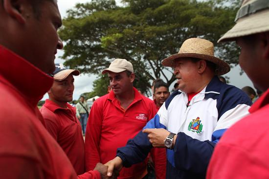 | Chávez cumprimenta agricultores no Estado Barinas em 17 de julho de 2012 |