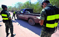 Na operação, 17 mil militares da Marinha, do Exército e da Aeronáutica, além de civis, foram mobilizados nos estados de Mato Grosso do Sul, Paraná, Santa Catarina e Rio Grande do Sul. Na primeira semana, o serviço de inteligência localizou materiais explosivos em Mato Grosso e Rio Grande do Sul. Apenas na fazenda Santa Mariana, em Itiquira (MT), foram apreendidos 7.725 quilos de nitrato de amônia e 3.855 quilos de emulsão de dinamite. A carga estava no interior de um caminhão e a destinação do material ainda será investigada pelo Exército.