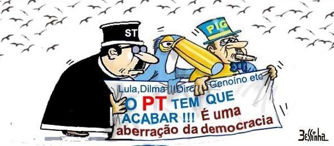 O PT, amparado no princípio da liberdade de expressão, critica e torna pública sua discordância da decisão do Supremo Tribunal Federal que, no julgamento da Ação Penal 470, condenou e imputou penas desproporcionais a alguns de seus filiados.