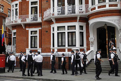 Reagindo às declarações do ministro das Relações Exteriores do Equador, Ricardo Patiño, que anunciou que o seu país deliberou conceder asilo a Assange, por considerar que a sua segurança e vida estariam ameaçadas caso ele fosse extraditado para a Suécia, o ministro britânico dos Negócios Estrangeiro veio garantir que “o Reino Unido não permitirá uma passagem segura” para Assange sair do país e que “não existe base legal para tal”. William Hague frisou ainda que o seu país “não reconhece o princípio do asilo diplomático”.