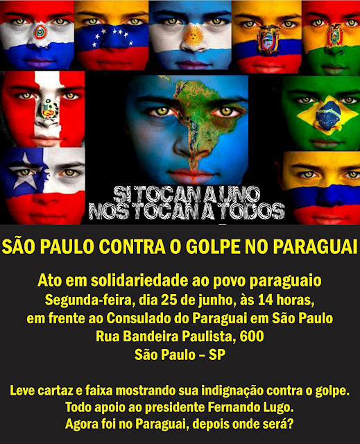 O que ocorreu no Paraguai foi um golpe de estado “novo tipo”, que apeou um governo legitimamente eleito através de uma conspiração de direita, dominante nas duas casas parlamentares. Estas jamais engoliram Lugo, assim como a elite privilegiada do nosso país jamais engoliu o Presidente Lula. Lá, eles tiveram sucesso porque o Presidente Lugo não tinha uma agremiação partidária sólida e estava isolado do sistema tradicional de poder, composto por partidos tradicionais que jamais se conformaram com a chegada à presidência de um bispo ligado aos movimentos sociais. A conspiração contra Lugo estava no Palácio, através do Vice-Presidente que agora “supreso” assume o governo, amparado nas lideranças parlamentares que certamente o “ajudarão” a governar dentro da democracia.