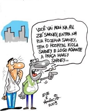 Uma mesma pessoa dando nome a dois logradouros? Seria um engano de placas? Quando voltei ao hotel, consultei o mapa da cidade e vi que, além do presidente e do governador, também o Senador José Sarney fora agraciado com o nome de uma avenida.