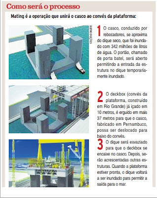 É a última preparação antes da integração das partes. O processo de manobra da embarcação está previsto para ocorrer na manhã desta segunda-feira. O enchimento do dique seco tinha previsão de durar quase todo o fim de semana passado em Rio Grande.