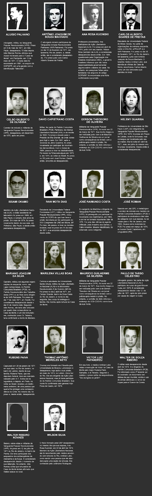Inês obteve informações de que estiveram na casa os militantes Ivan Mota Dias, Walter Ribeiro Novaes, Carlos Alberto Soares de Freitas, Marilena Villas Boas e o ex-deputado federal Rubens Paiva. A procuradora Vanessa Seguezzi, porém, devido a outras informações, trabalha com uma lista mais ampla, de 22 nomes.