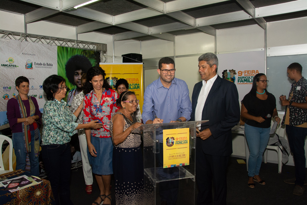 Famílias assentadas da Reforma Agrária, do Assentamento Terra Prometida, do município de Nova Soure, assinaram, nesta segunda-feira (26), contratos do Crédito Fomento Mulher. A solenidade aconteceu durante o III Encontro Estadual e Mulheres Rurais “ Ater e a valorização do trabalho da mulher”, que integra a 9ª Feira Baiana da Agricultura Familiar e Economia Solidária, maior feira de agricultura familiar do Brasil.