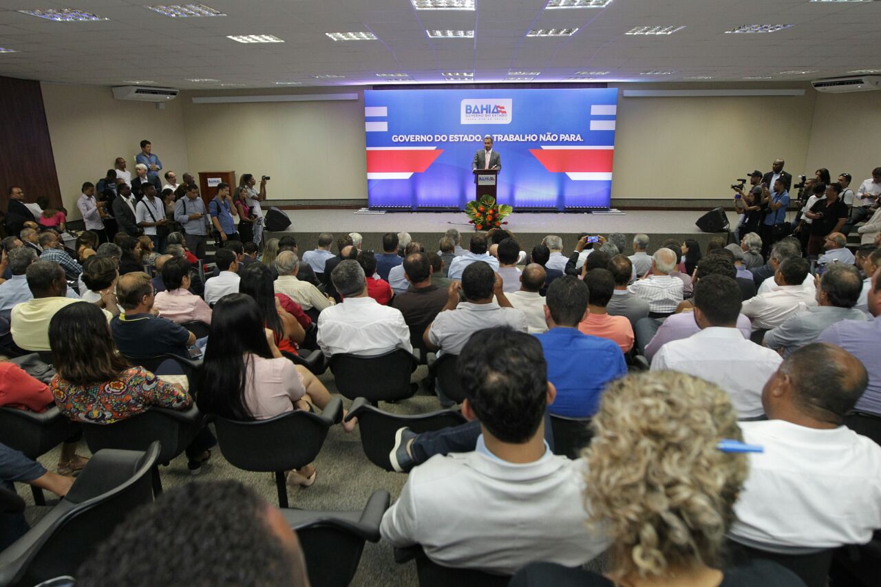 O governador Rui Costa se reuniu com prefeitos do interior do estado na tarde desta nesta quarta-feira (31), no auditório da Secretaria de Infraestrutura (Seinfra), em Salvador. Foram assinados diversos convênios nas áreas de saúde e infraestrutura urbana, totalizando R$ 25 milhões em investimentos. “Hoje chegamos a 204 municípios contemplados e R$ 120 milhões em convênios nesses encontros”, afirmou Rui.