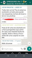 Enquanto essas pessoas fazem a apologia ao crime, narram crimes praticados, outros comemoram ao, também, deixarem suas mensagens. Está na hora da polícia tomar uma providência contra essa onda de violência que o Brasil vem vivendo por conta da disputa eleitoral. Não devemos dar espaço para a barbárie, venha de que lado vier.