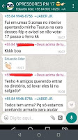 O Jader é o mais exaltado nas conversas, chega a perguntar se “todos têm arma?”. E diz que só estão aceitando pessoas do grupo que possam estar armadas para ajudarem no esquema. Qual o esquema? “Tocar o terror no ptralhas”.